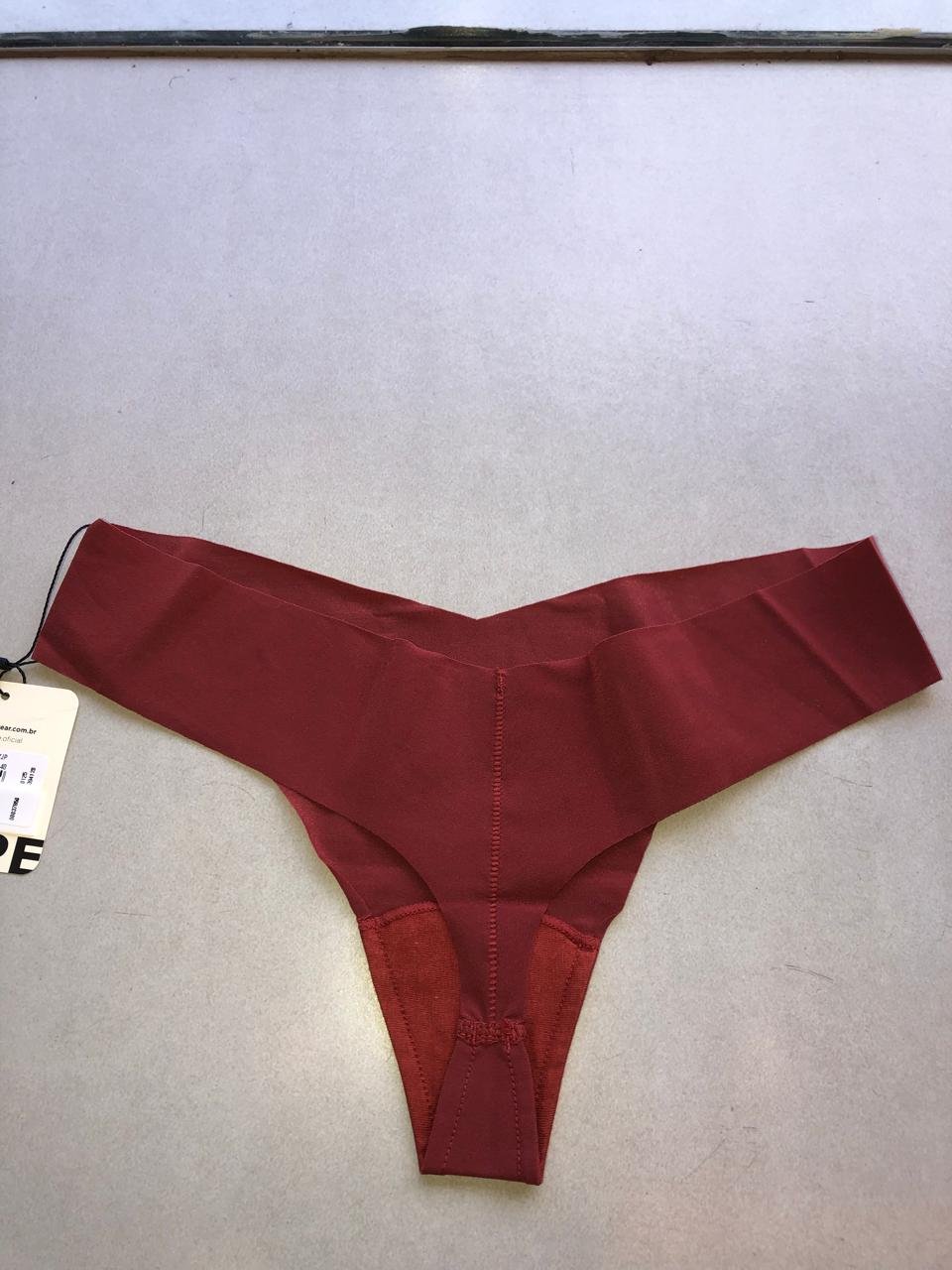CALCINHA FIO DENTAL EM MICROFIBRA NUDE – VERMELHO JASPE – G